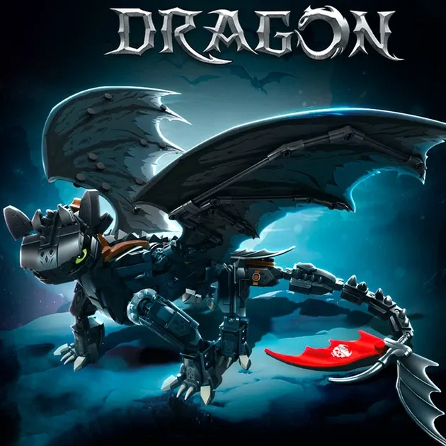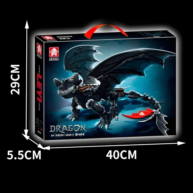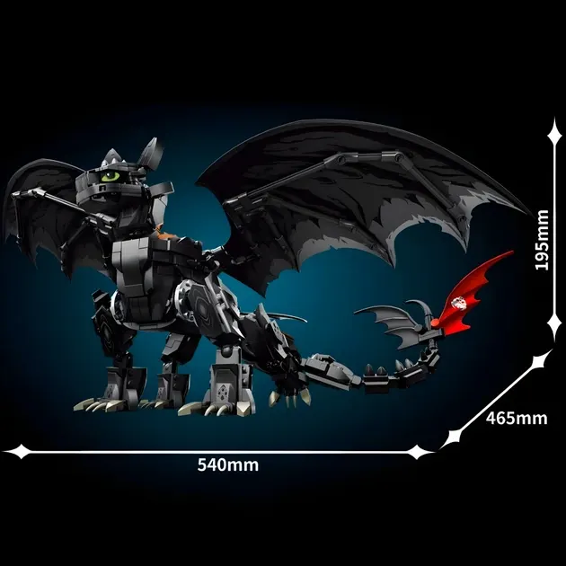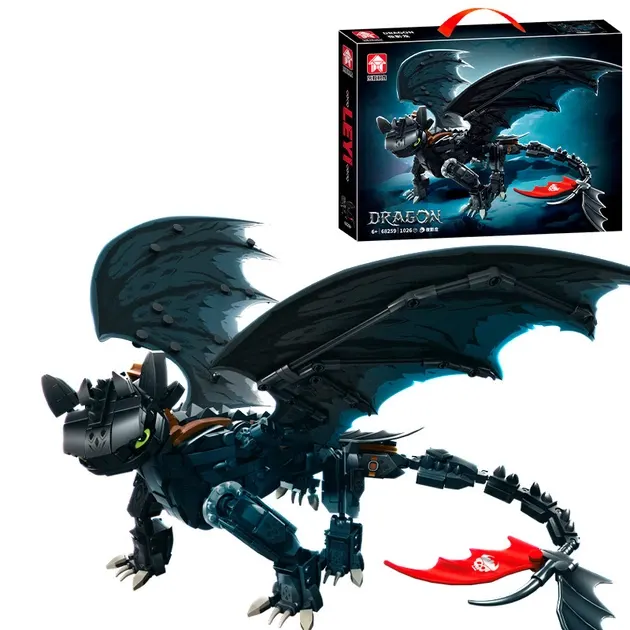 Конструктор дракон Беззубик 54см на 1026 деталей як приборкати дракона чорний