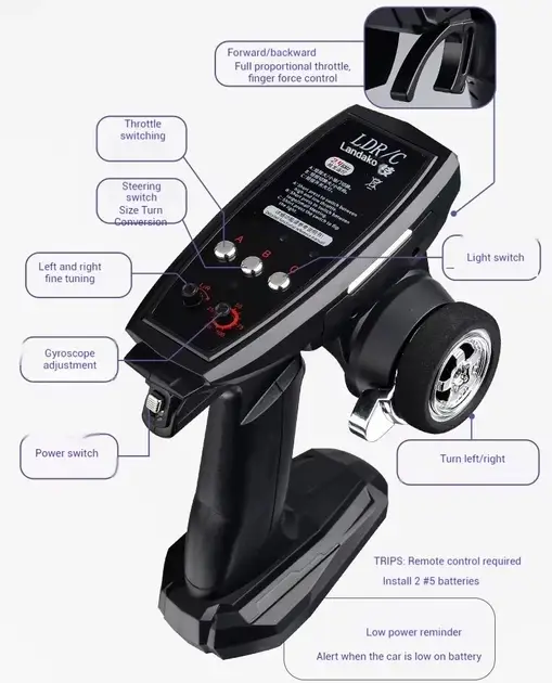 4. Виворіт коліс має два режими, які включаються із кнопки на пульті.