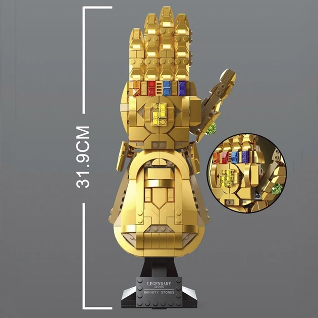 Цей вражаючий блочний конструктор пропонує створити золоту Рукавицю Нескінченності – культовий артефакт із кіновсесвіту Marvel.